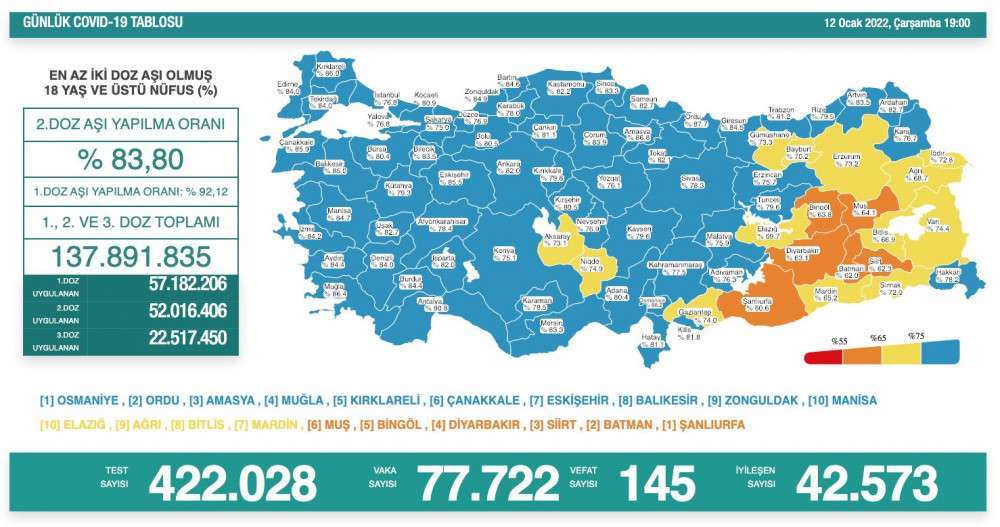 Sağlık Bakanlığı, son 24 saatte 145 kişinin korona virüsten hayatını kaybettiğini, 77 bin 722 yeni vakanın olduğunu açıkladı