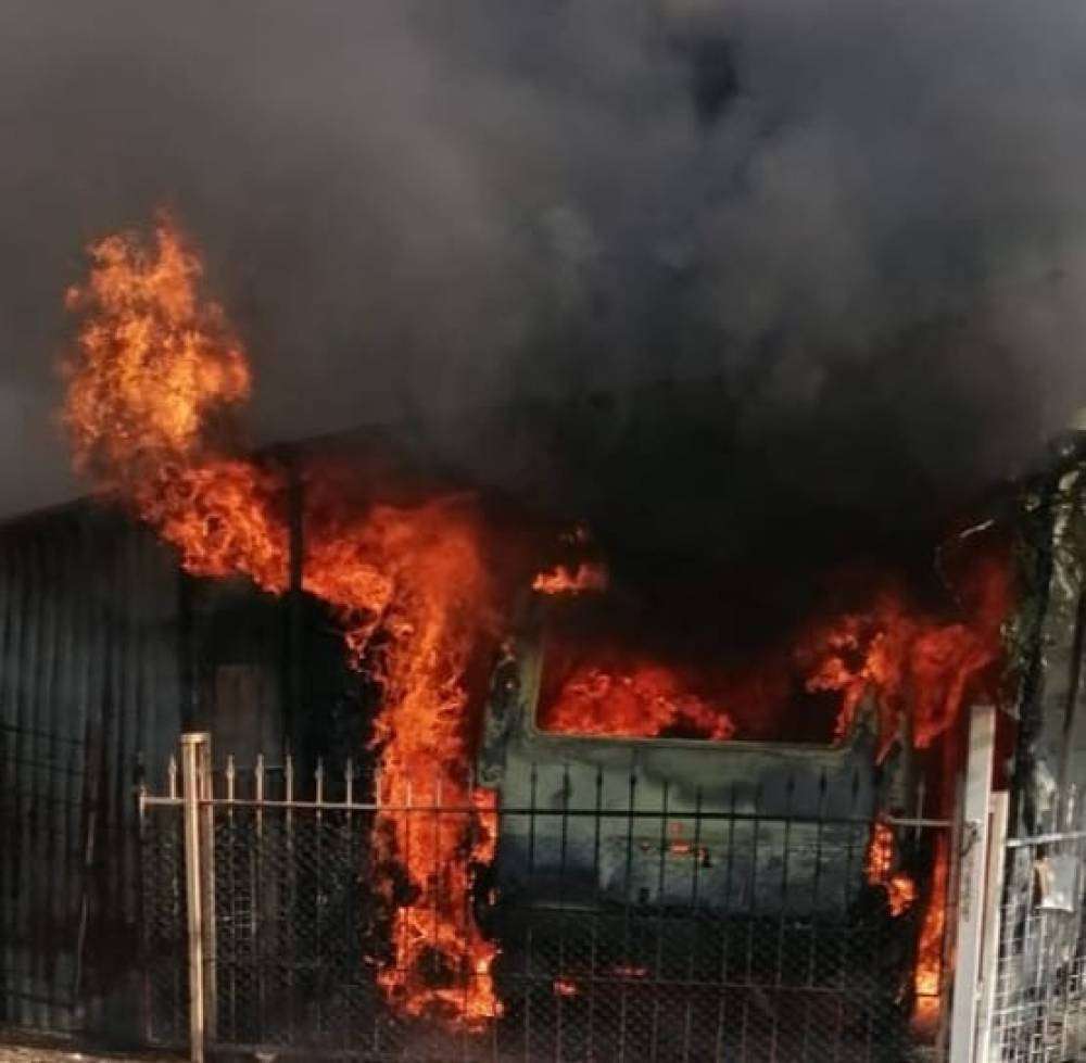 Ahır yangınında ticari araç küle döndü, 8 hayvan alevlerden zarar gördü