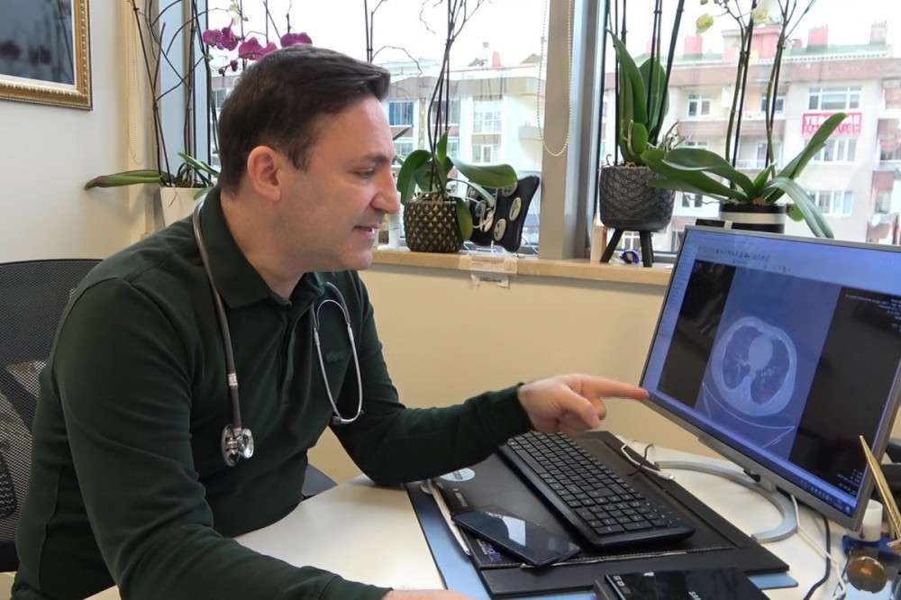 Korona aşısı olmayan ve ciddi tutulumlarla hastanede tedavisi yapılan kişilerin akciğerlerini inceleyen Özkaya, "Size aşısız 2 tane hasta göstermek istiyoruz. İlki 46 yaşında genç hastamız. İş yükü nedeniyle aşıya vakit bulamadığı için aşısız ve akciğer tutulumu ile geldi. Belirgin nefes darlığı vardı. Tedavisini yaparak gönderdik. 50'li yaşlarda olan ve yurt dışına çok sık seyahat ettiği için aşı yaptırmakta vakit bulamayan bir hastamız. Belirgin akciğer tutulumu ile geldi. Aşı olmadığı için ciddi akciğer tutulumu ve solunum yetmezliği ile yatırdık. Tedavi ederek evine gönderdik. Artık mevsimsel grip ile Covid birbirine karıştı. Özellikle omicron varyantının toplumda artması ile beraber grip gibi semptomlarla geliyor ve grip gibi geçiyor. Bunu sadece ve sadece aşı olanlarda görüyoruz" ifadelerini kullandı.