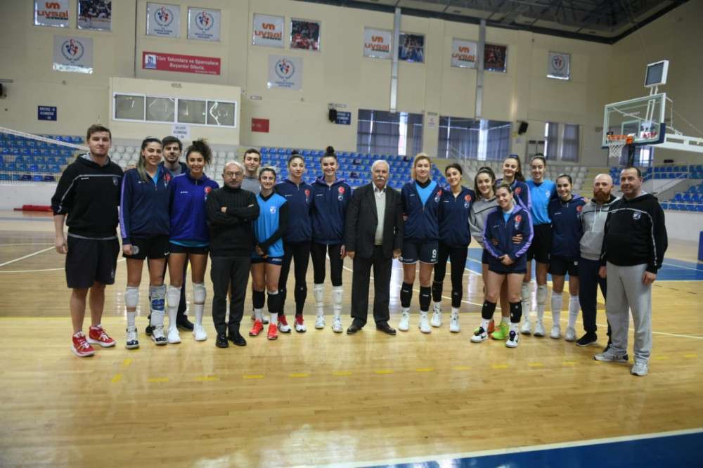 Belediye Başkanı Ülgür Gökhan, Çanakkale Belediyespor Kadın Voleybol Takımının antrenmanını ziyaret ederek, oyunculara tatlı ikramında bulundu.