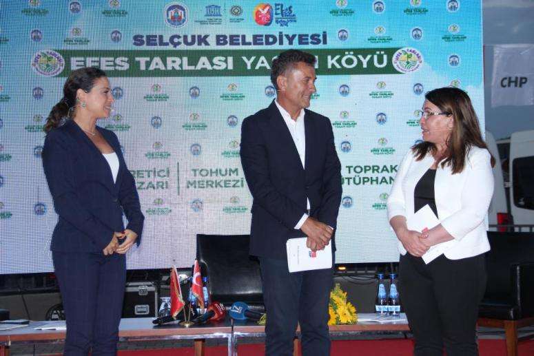 Programda konuşan Selçuk Belediye Başkanı Filiz Ceritoğlu Şengel, CHP’nin tarım politikalarına ilişkin çıkardığı kitabın lansmanının Selçuk’ta gerçekleştirilmesinin gurur verici olduğunu belirterek, “Biz, Efes Tarlası Yaşam Köyü adında bir vizyon ortaya koyduk. Bunu ortaya koyduğumuzda bu işi fikirleriyle destekleyen sayın Orhan Sarıbal’a teşekkürlerimi sunuyorum. Kırsaldan şehirlere göçün engellenmesi, ancak üretimin daha da desteklemesi ve doğru tarım noktalarının da aktarılabilmesiyle mümkün. Biz bu yüzden Efes Tarlası Yaşam Köyü’nün içerisine bir toprak okulu kurduk. Biraz önce çocuklarımızı toprakla buluşturduk ama bunu rutin haline getirdik. Her eğitim alan çocuğumuz, bir sonraki yeni gelen üye çocuğumuza bildiklerini aktarıyor. Çünkü bizim kafamız şöyle çalışıyor: şapkadan tavşan çıkarmaya gerek yok. Eğitim diye ağzına pelesenk edenlerin sadece tarihe bakması gerekiyor. Bizim tarihten ders çıkarabileceğimiz, şu anda kendimize vizyon ettiğimiz köy enstitüleri ruhunu günümüzde yaşatmak için çaba sarf ediyoruz” dedi.