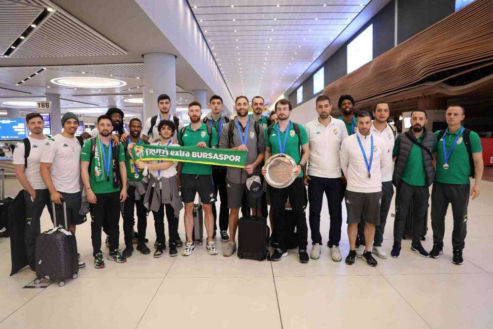 Final maçında 80-67’lik skorun ardından turnuvayı ikinci sırada tamamlayan Frutti Extra Bursaspor, ikincilik ödülüyle havaalanında hatıra fotoğrafı çektirdi.