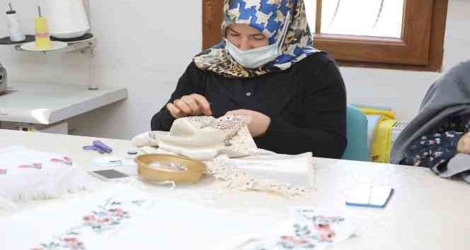 Kurslarda kadınlara her türlü araç ve malzeme imkanı sağlanıyor. Kurslarda el emeği göz nuru ürünlerini ortaya çıkaran kadınlar, hem yılsonu sergisinde sergiliyor, hem de ürettiklerini satarak aile bütçelerine katkı sunuyor.