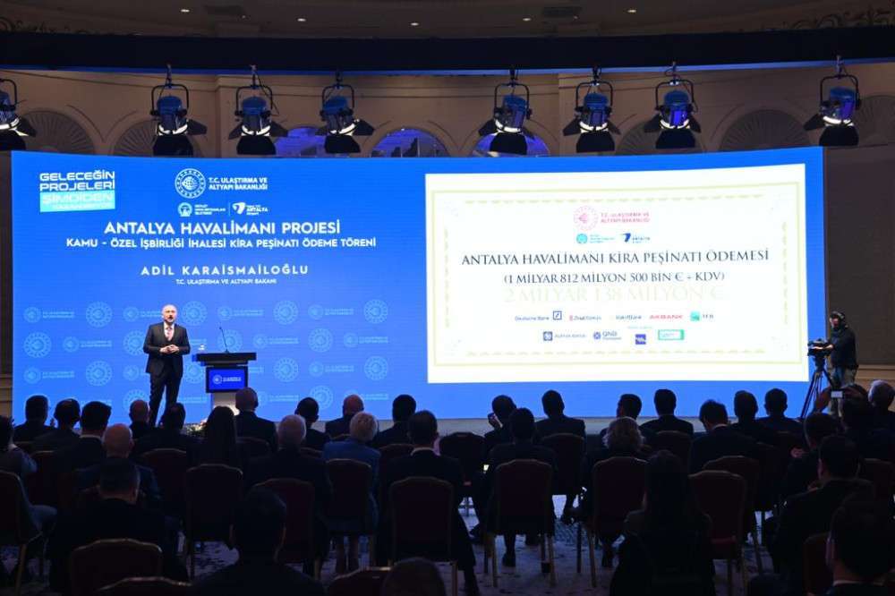 Ulaştırma ve Altyapı Bakanı Adil Karaismailoğlu, Antalya Havalimanı Projesi’ni kazanan konsorsiyumun kira bedelinin 2 milyar 138 milyon avroluk peşinatını ödediğini duyurdu.