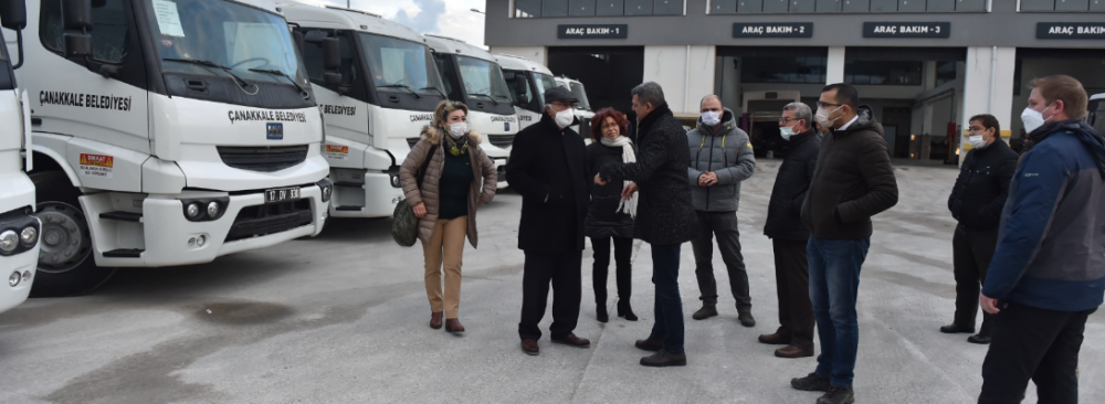 Çanakkale Belediyesi Teknik Hizmetler Kampüsü'nde bulunan araçları yerinde inceleyen Başkan Gökhan, gerçekleştirilen yenileme çalışmaları ve kamyonların hangi birimlerde kullanılacağı hakkında teknik ekipten bilgi aldı.